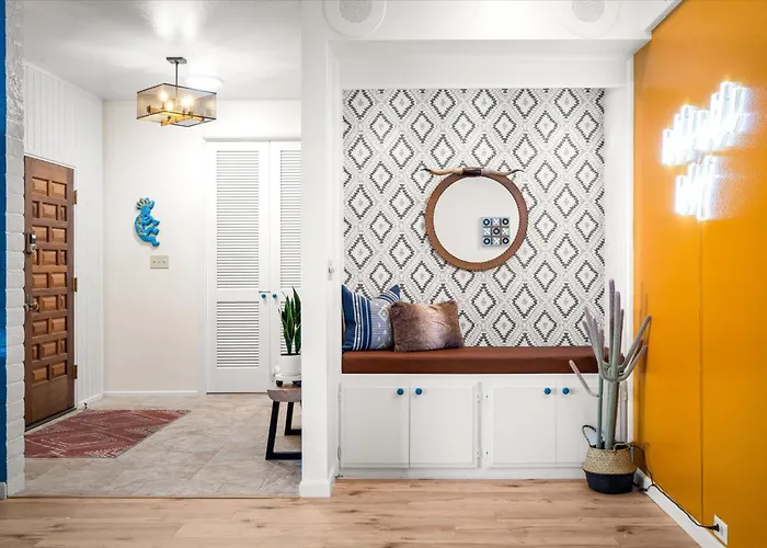Podrás llegar al aeropuerto Internacional de Phoenix-Sky Harbor en 17 minutos en coche, y hay atracciones naturales como el Monte Camelback a 10 minutos en coche. La villa Wild Wild West Foosball Fire Pit & Shared Pool está situada a un corto paseo del Centro Histórico de Scottsdale, mientras que la estación de autobuses Goldwater Blvd & Camelback Rd está a 900 metros. Esta villa está a 6 km de un lugar tan familiar como el Zoológico de Phoenix.